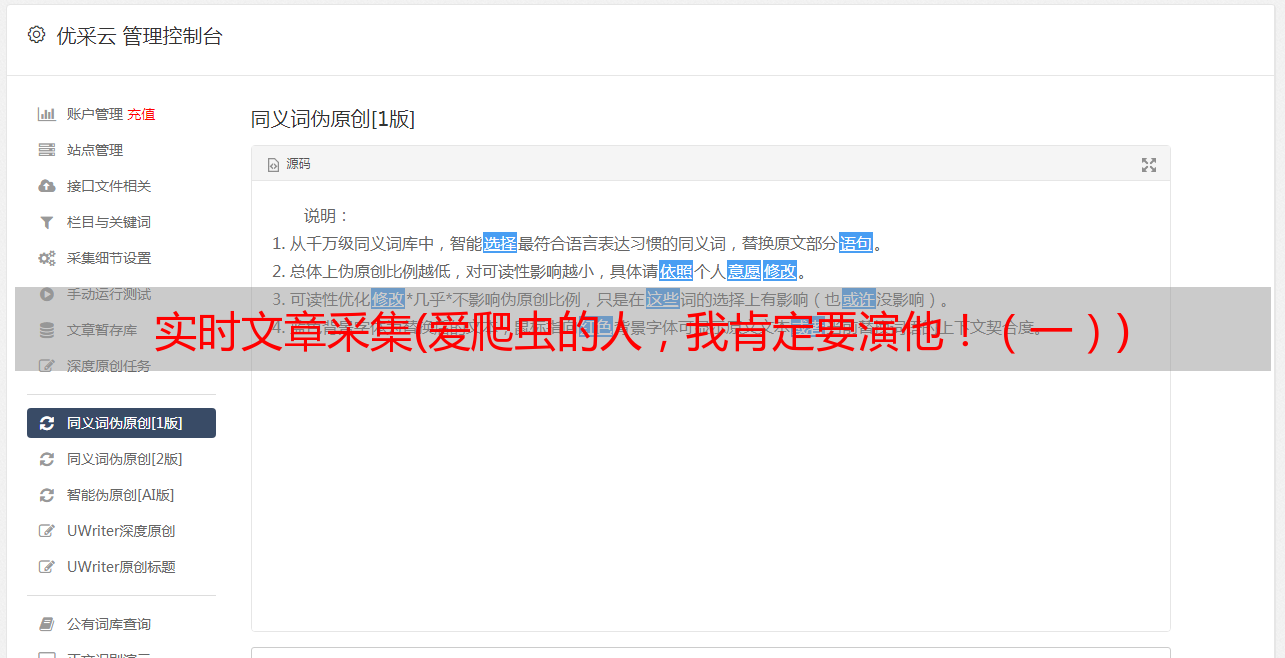 优采云 发布时间: 2022-03-31 06:19实时文章采集(爱爬虫的人,我肯定要演他!(一))