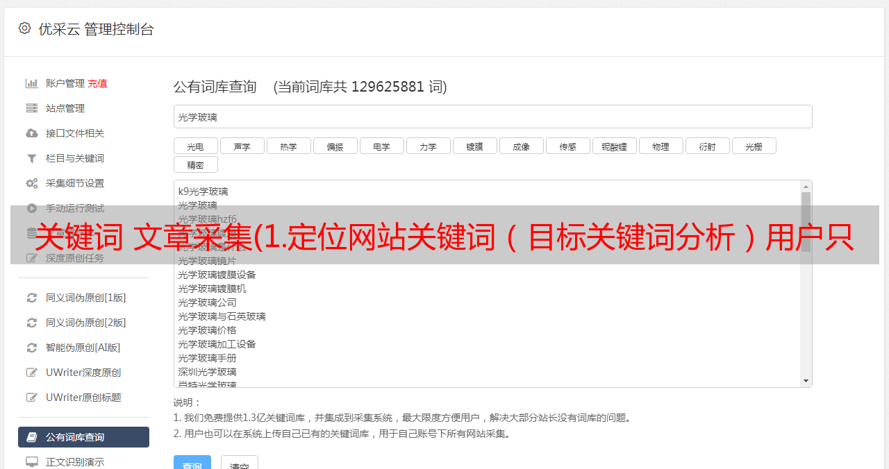 优采云 发布时间: 2022-03-31 14:28关键词 文章采集(1.定位网站关键词(目标关键词分析)用户只需进行简单的设置)