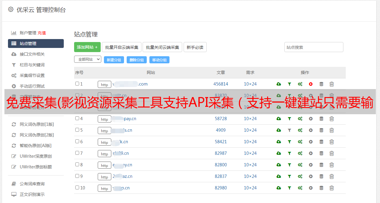 免费采集(影视资源采集工具支持API采集(支持一键建站只需要输入域名选择影视模板) )