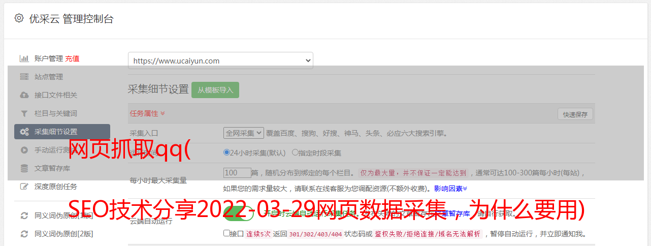 网页数据采集,为什么要用网页数据采集?因为网页数据采集的内容便于更多的分析参考和网站的内容更新。今天给大家分享一个网络数据采集工具。采集 的数据可以保存到本地发布的网站。支持主要的网站 发布。自动采集+伪原创只需两步即可发布。具体会以图片的形式展示给大家,大家要注意图片(图片是核心)。