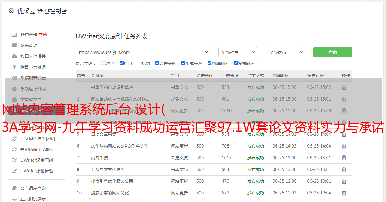 网站内容管理系统后台 设计( 3A学习网-九年学习资料成功运营汇聚97.1W套论文资料实力与承诺 )