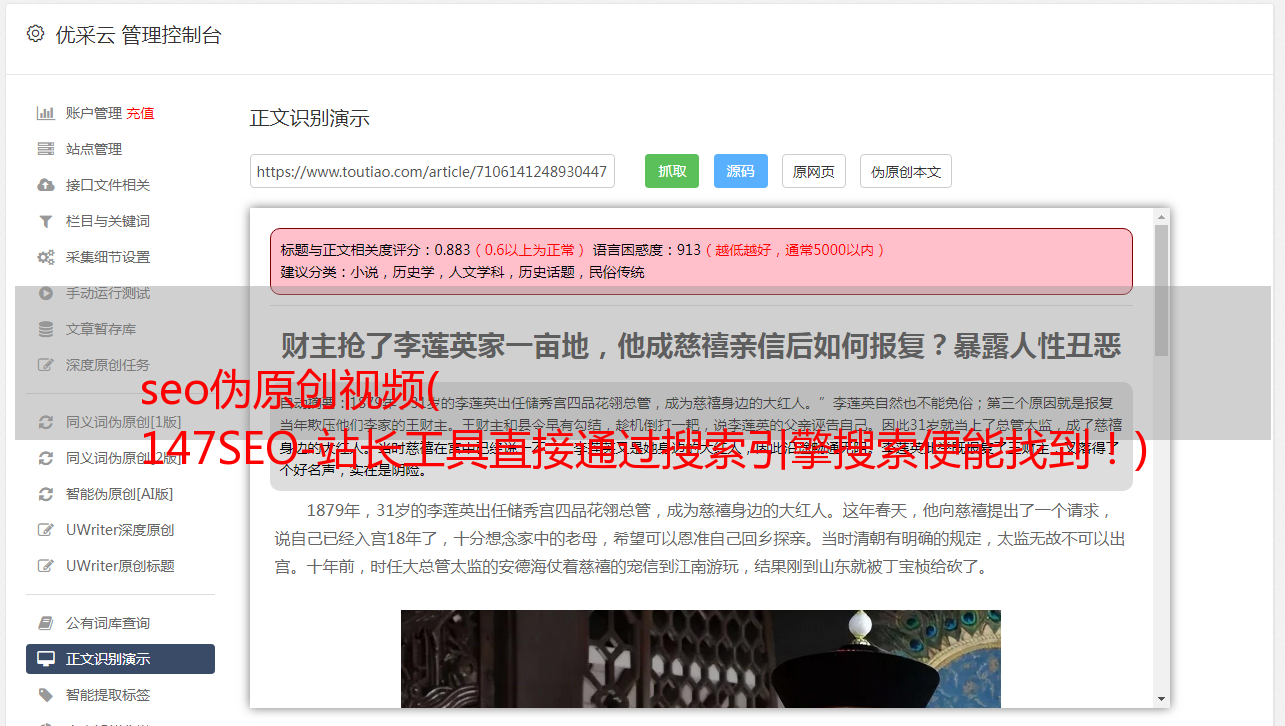 seo伪原创视频( 147SEO-站长工具直接通过搜索引擎搜索便能找到!)