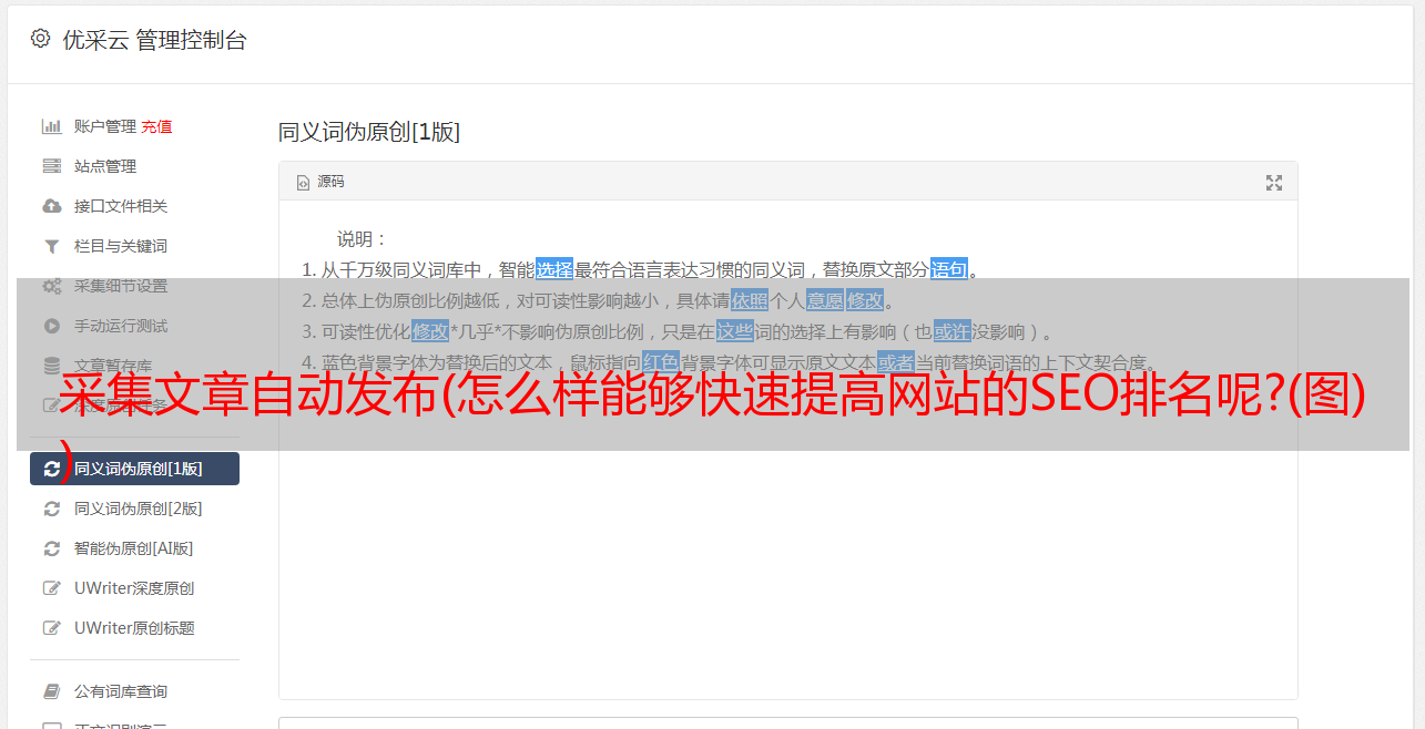 优采云 发布时间: 2022-04-02 22:09采集文章自动发布(怎么样能够快速提高网站的SEO排名呢?(图)