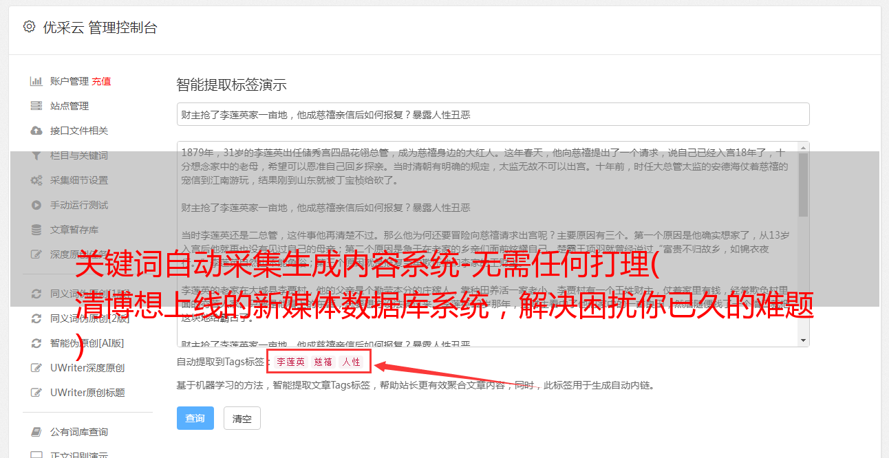 关键词自动采集生成内容系统-无需任何打理( 清博想上线的新媒体数据库系统,解决困扰你已久的难题 )