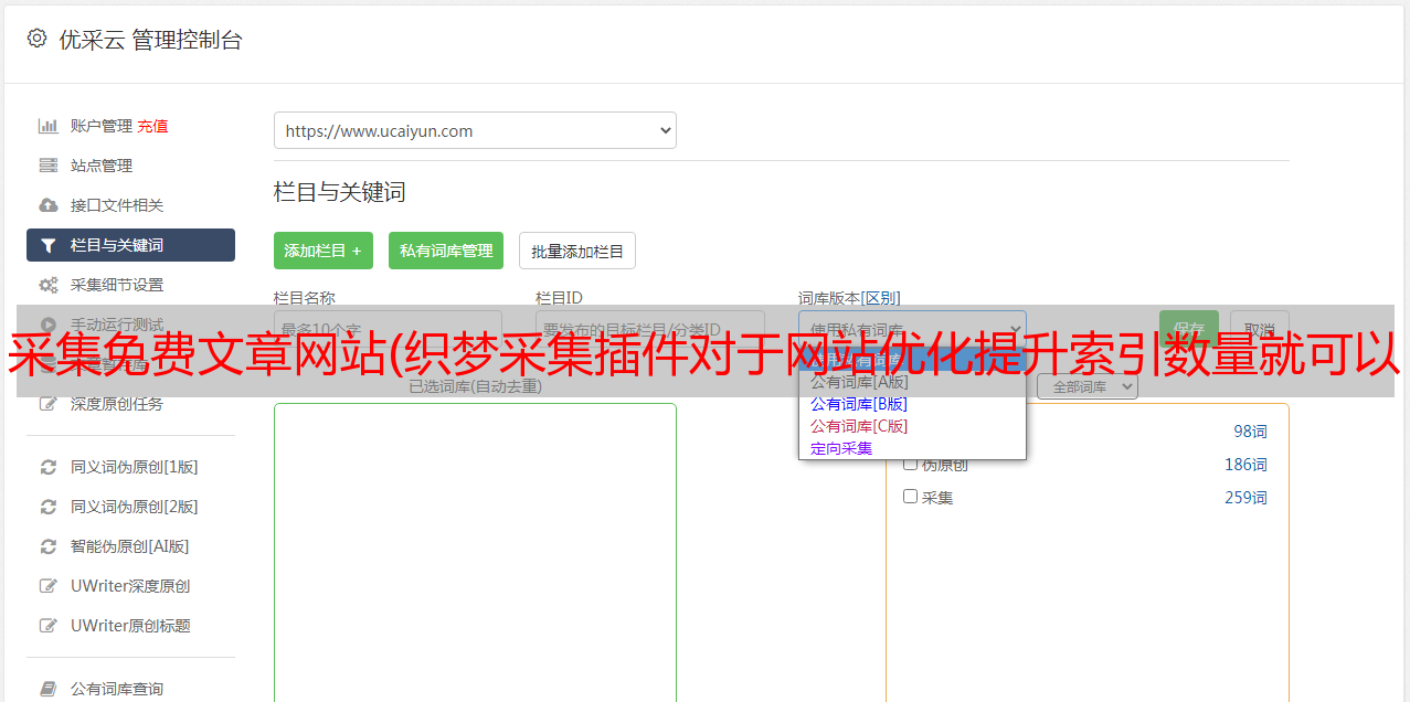 这个织梦采集插件不需要学习更多的专业技能,只需要简单几步就可以轻松搞定采集内容数据,用户只需要添加织梦采集 在插件上进行了简单的设置。完成后,织梦采集插件会根据用户设置的关键词,对内容和图片进行高精度匹配。您可以选择保存在本地,也可以选择伪原创发布后,提供方便快捷的内容采集伪原创发布服务!!