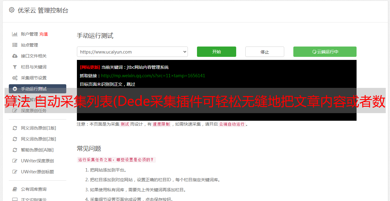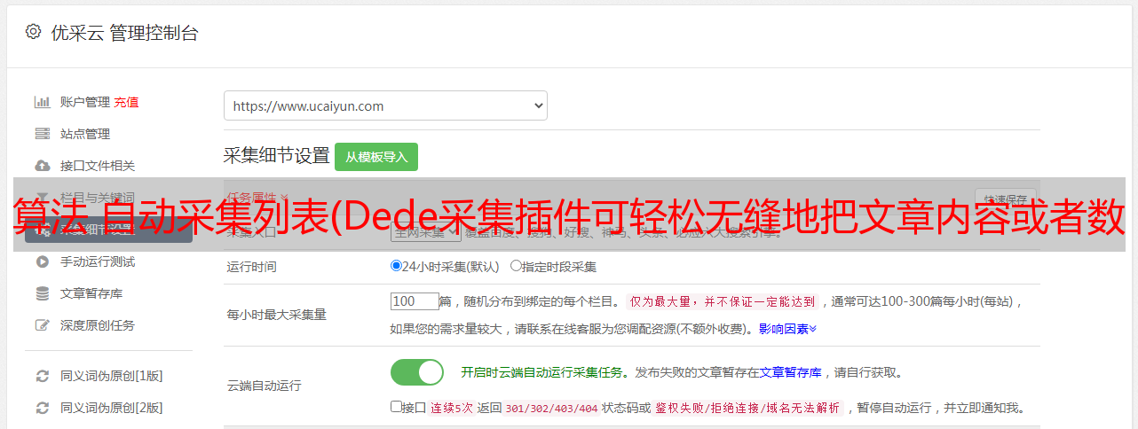 优采云 发布时间: 2022-04-04 04:06算法 自动采集列表(Dede采集插件可轻松无缝地把文章内容或者数据发布(图))