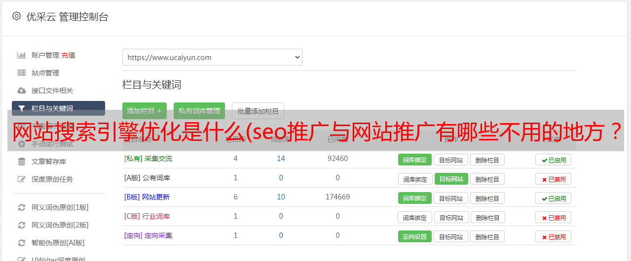 优采云 发布时间: 2022-04-04 09:02网站搜索引擎优化是什么(seo推广与网站推广有哪些不用的地方?(图))