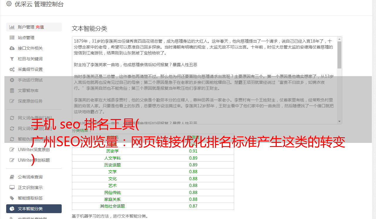 手机 seo 排名工具( 广州SEO浏览量:网页链接优化排名标准产生这类的转变 )