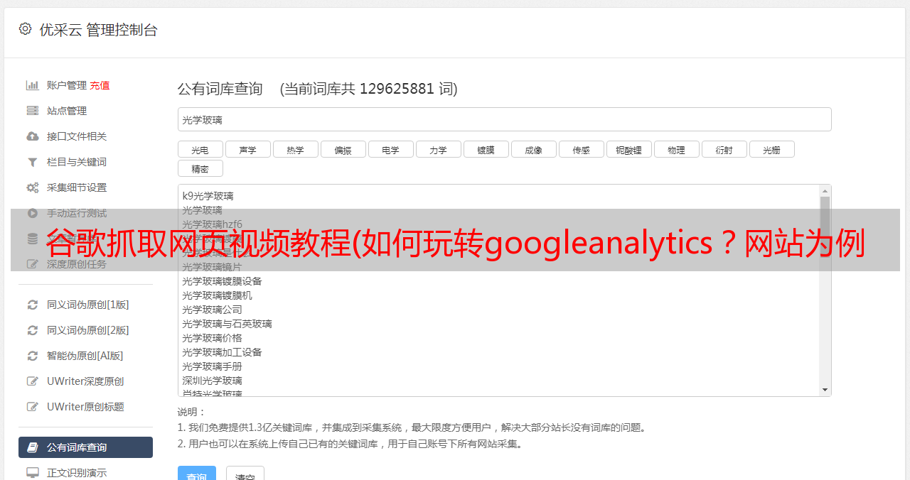 优采云 发布时间: 2022-04-04 18:04谷歌抓取网页视频教程(如何玩转googleanalytics?网站为例来说明下如何安装)