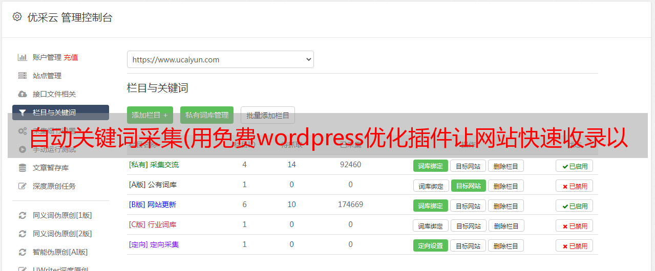 优采云 发布时间: 2022-04-05 02:14自动关键词采集(用免费wordpress优化插件让网站快速收录以及关键词排名!)