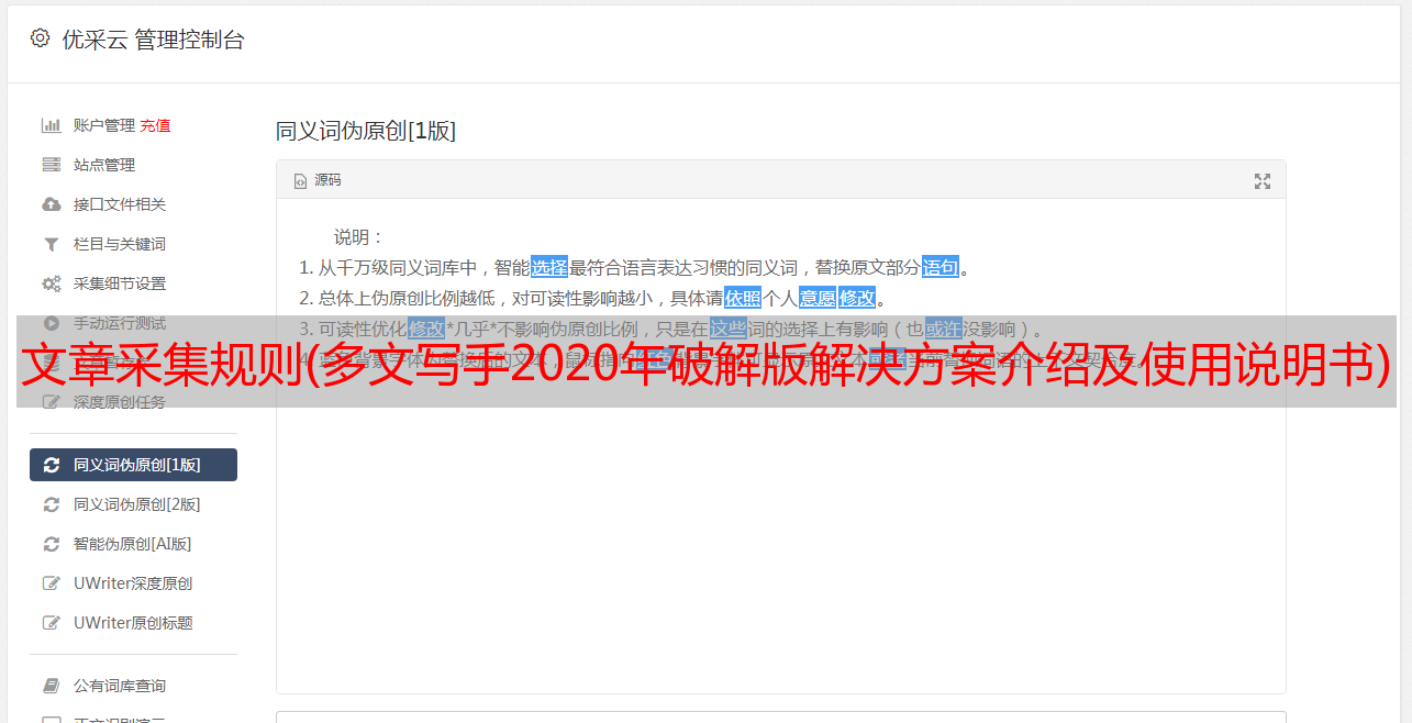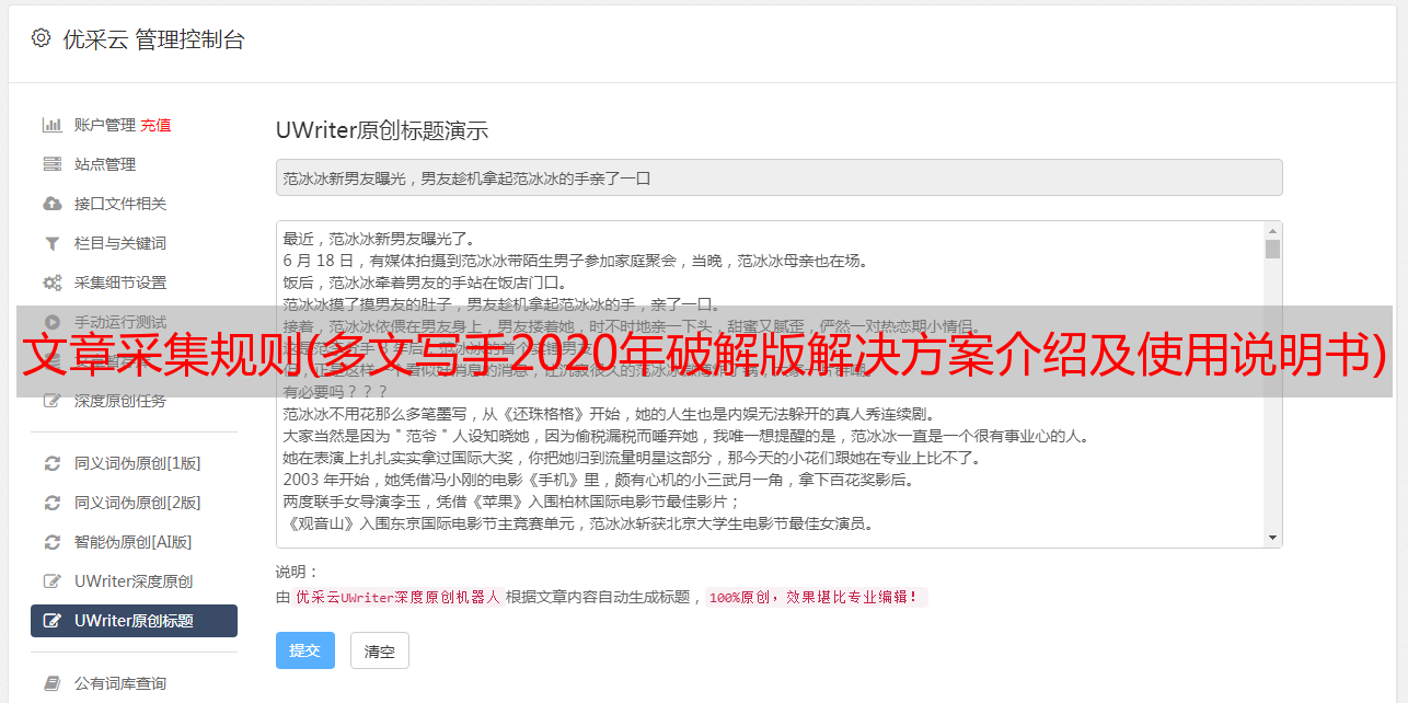 文章采集规则(多文写手2020年破解版解决方案介绍及使用说明书)