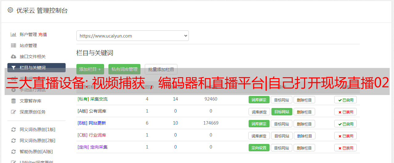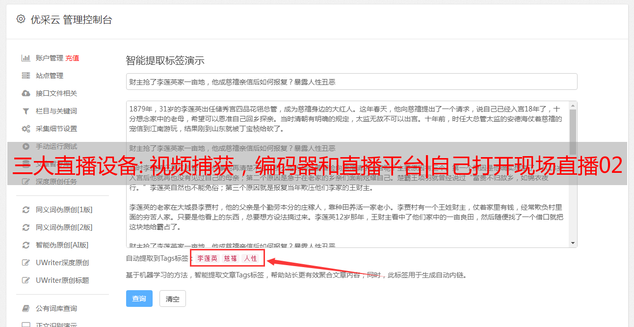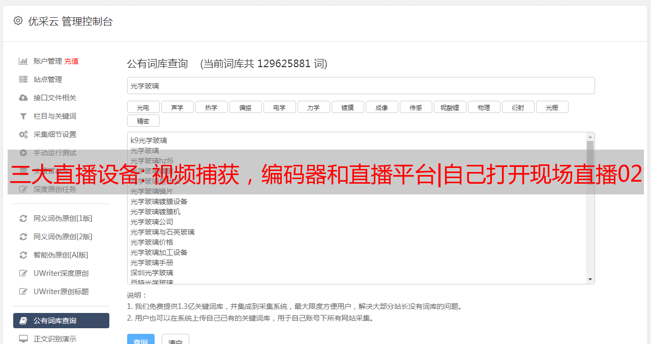 优采云 发布时间: 2020-08-06 18:05在上一期中,我们详细介绍了网络广播的基本原理和推送流. 实际上,网络广播系统是一个复杂的工程系统,但是您无需复杂的操作即可轻松地通过微视频广播开始使用. . 在本期中,我们讨论网络广播所需的设备. 我们可以将其称为“网络广播的三个主要部分”: 视频捕获设备,编码器和直播平台. 是的,这三个设备足以满足大多数现场直播场景的需要. 另外,直播对网络的要求比较高,但这需要根据不同的场景提供不同的解决方案,因此暂时不赘述.