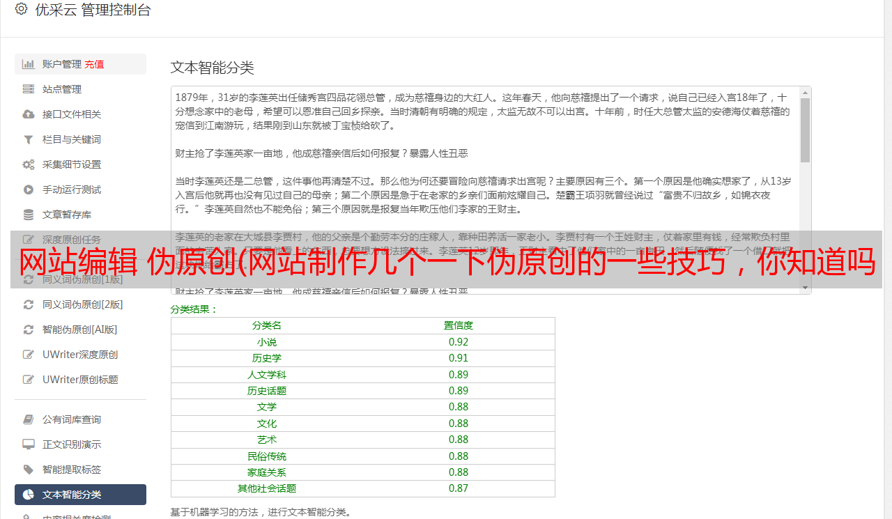 优采云 发布时间: 2022-04-06 10:20网站编辑 伪原创(网站制作几个一下伪原创的一些技巧,你知道吗?)