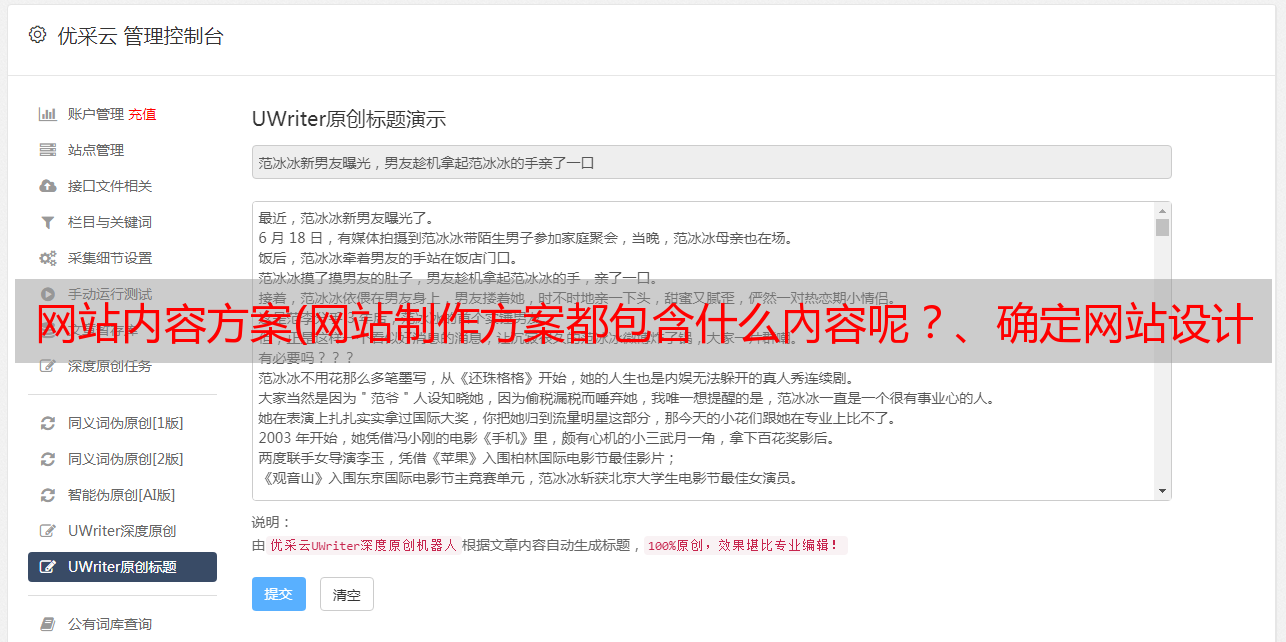 优采云 发布时间: 2022-04-06 11:00网站内容方案(网站*敏*感*词*案都包含什么內容呢?、确定网站设计风格)