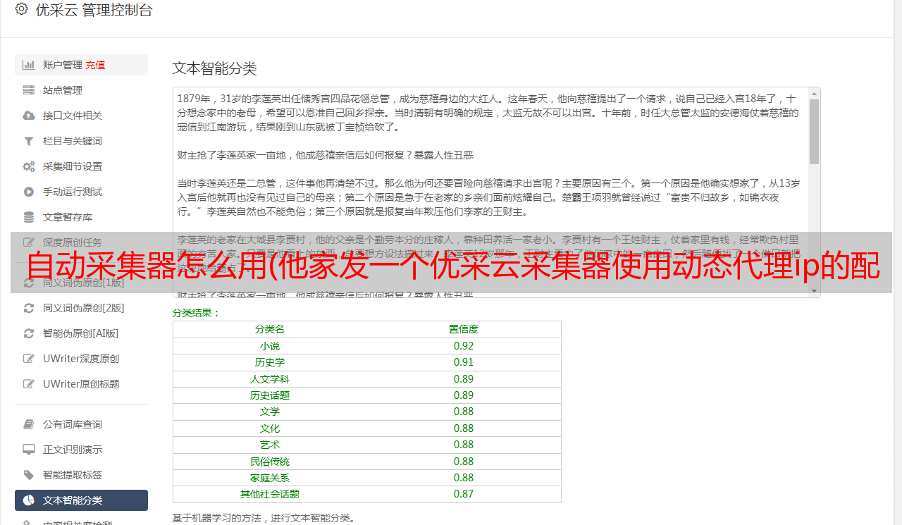 自动采集器怎么用(他家发一个优采云采集器使用动态代理ip的配置方法介绍)
