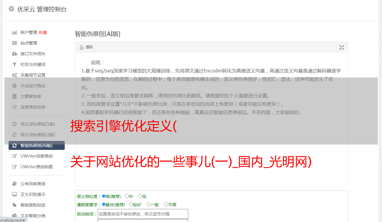 优采云 发布时间: 2022-04-06 18:07搜索引擎优化定义(
