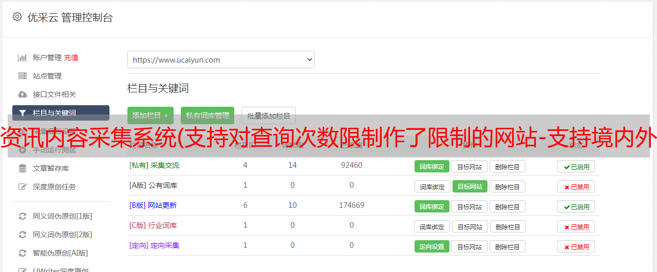 资讯内容采集系统(支持对查询次数限制作了限制的网站-支持境内外 )