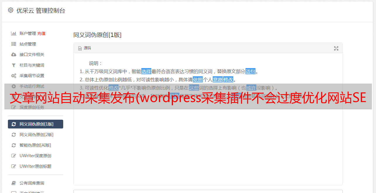 优采云 发布时间: 2022-04-07 00:07文章网站自动采集发布(wordpress采集插件不会过度优化网站SEO收录还有SEO排名?)