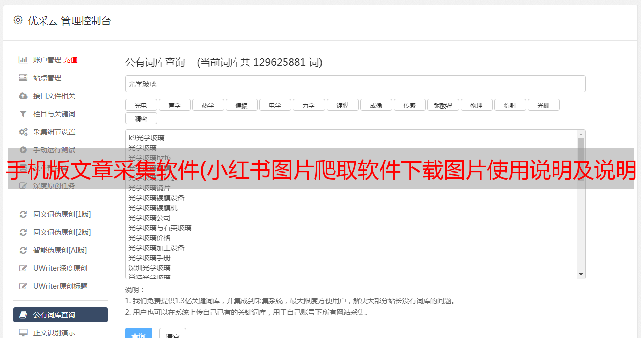 优采云 发布时间: 2022-04-07 02:13手机版文章采集软件(小红书图片爬取软件下载图片使用说明及说明软件功能介绍