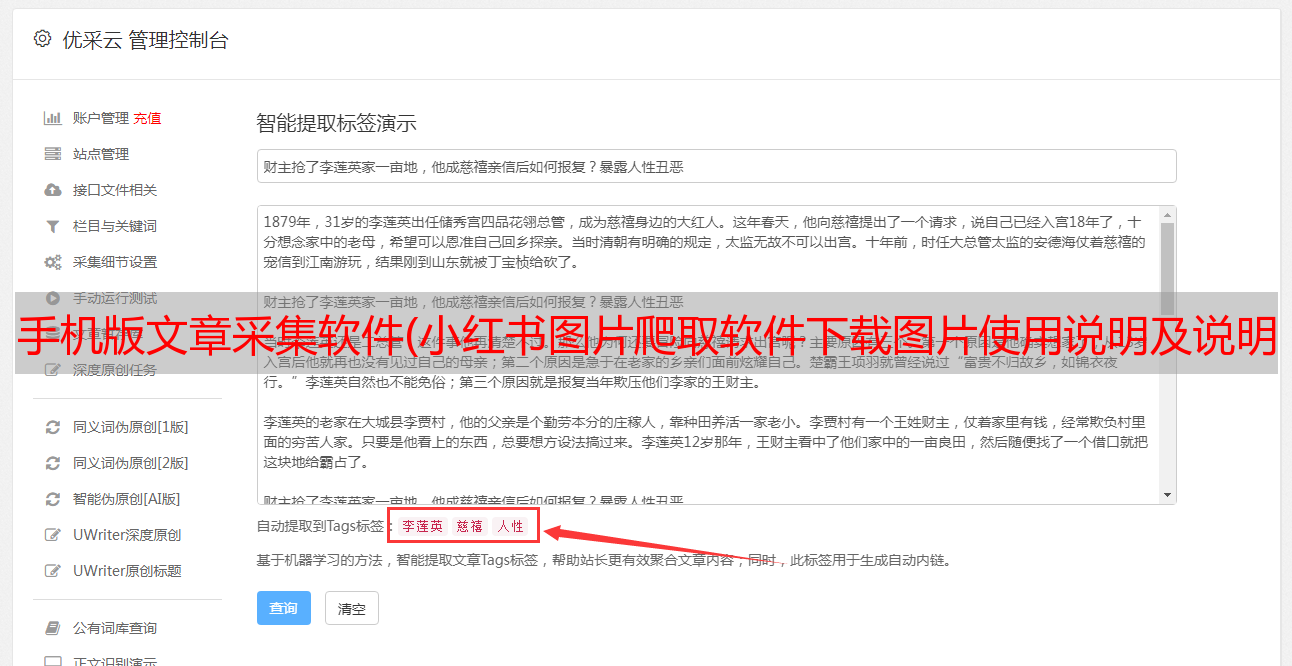手机版文章采集软件(小红书图片爬取软件下载图片使用说明及说明软件功能介绍 )