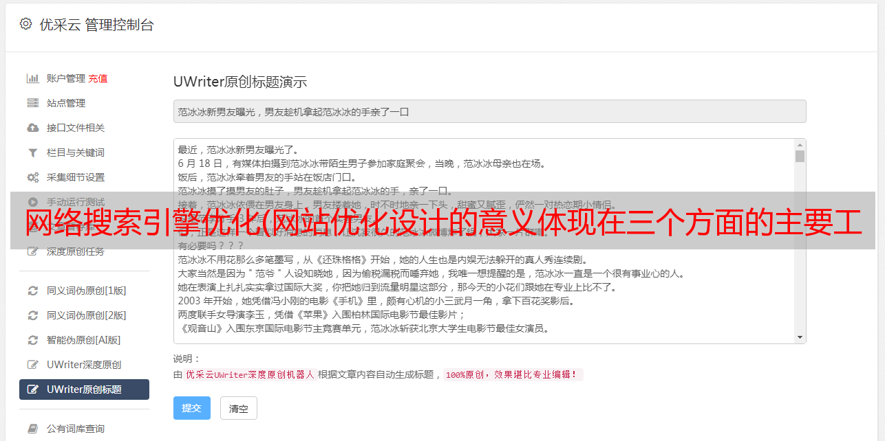 优采云 发布时间: 2022-04-07 05:28网络搜索引擎优化(网站优化设计的意义体现在三个方面的主要工作)