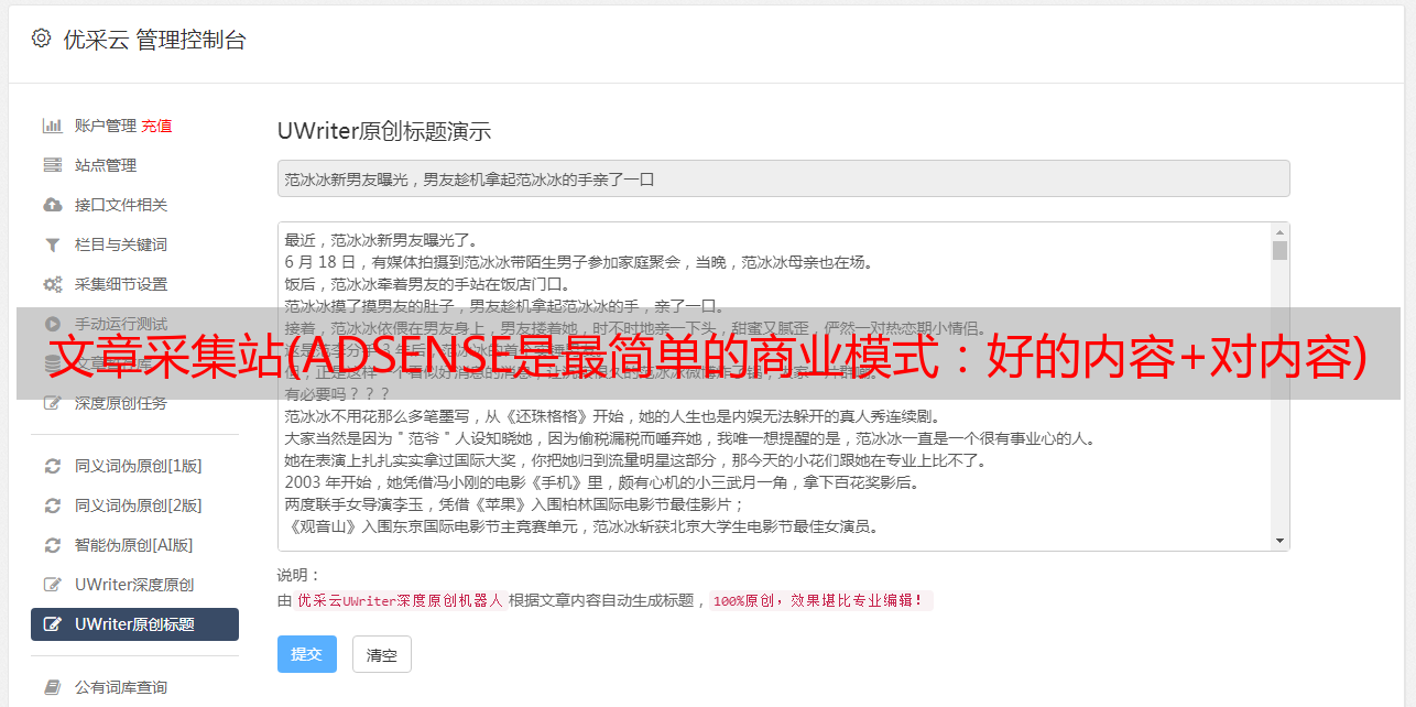 文章采集站(ADSENSE是最简单的商业模式:好的内容+对内容)