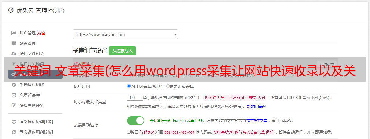 优采云 发布时间: 2022-04-07 08:32关键词 文章采集(怎么用wordpress采集让网站快速收录以及关键词排名,相信做SEO的小伙伴)