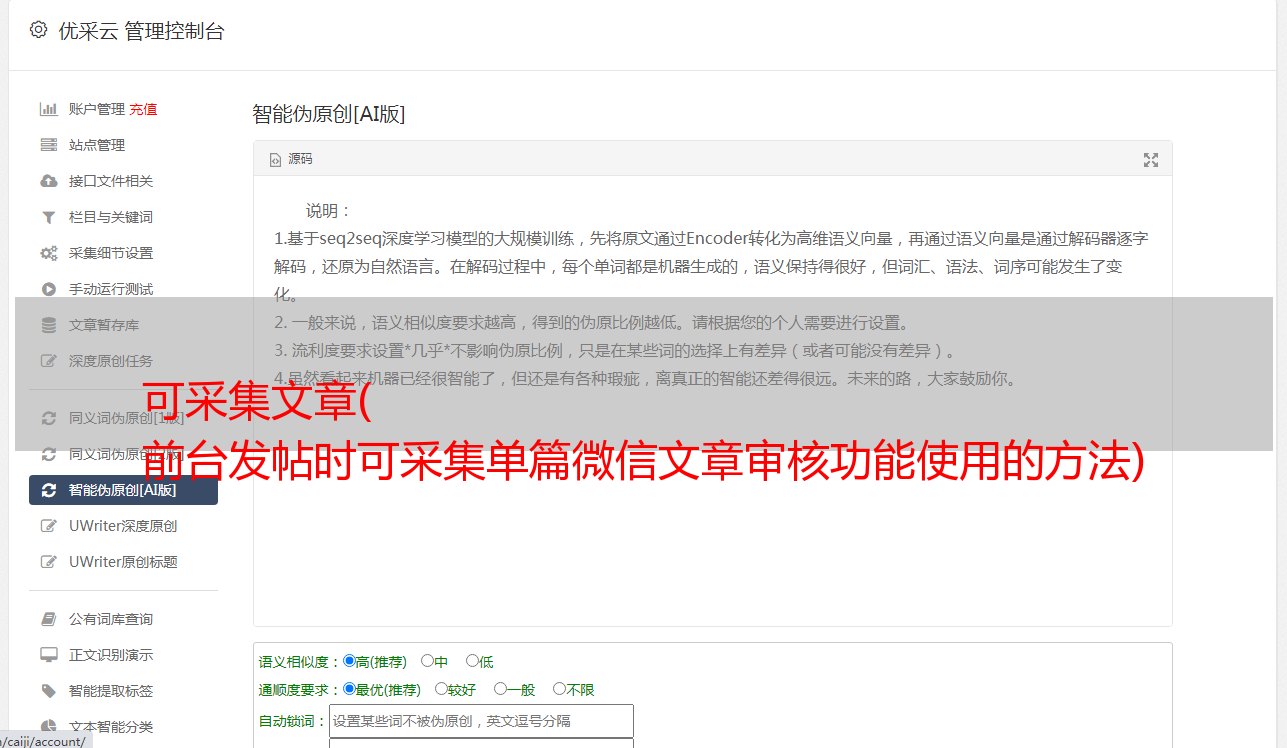 可采集文章( 前台发帖时可采集单篇微信文章审核功能使用的方法)
