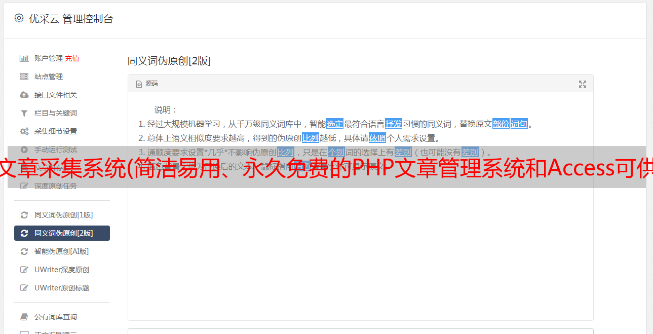 优采云 发布时间: 2022-04-07 15:22文章采集系统(简洁易用、永久免费的PHP文章管理系统和Access可供选择