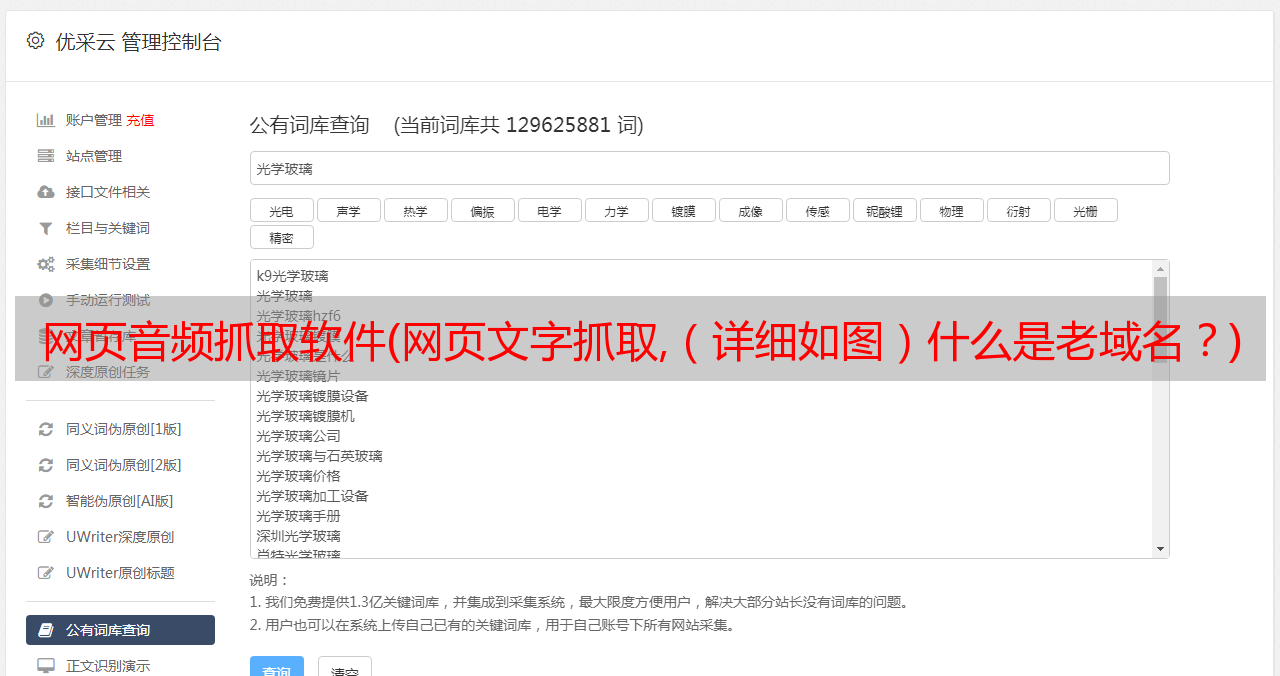 优采云 发布时间: 2022-04-07 19:25网页音频抓取软件(网页文字抓取,(详细如图)什么是老域名?)