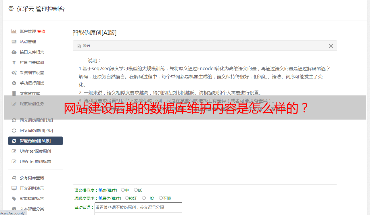 优采云 发布时间: 2021-05-15 22:13网站建设后期的数据库维护内容是怎么样的?