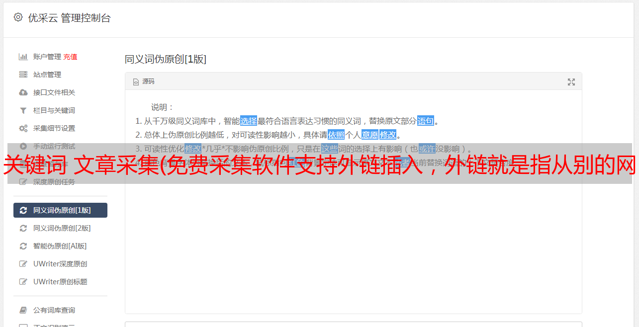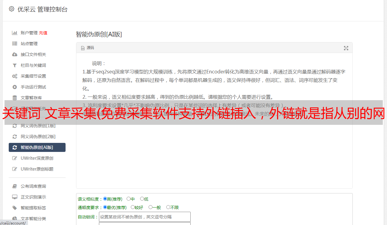 优采云 发布时间: 2022-04-08 16:42关键词 文章采集(免费采集软件支持外链插入,外链就是指从别的网站导入到