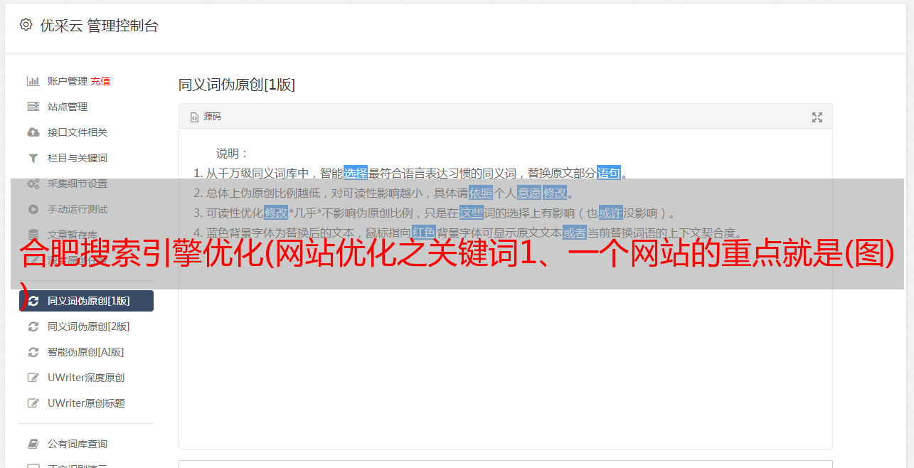优采云 发布时间: 2022-04-08 22:26合肥搜索引擎优化(网站优化之关键词1、一个网站的重点就是(图)