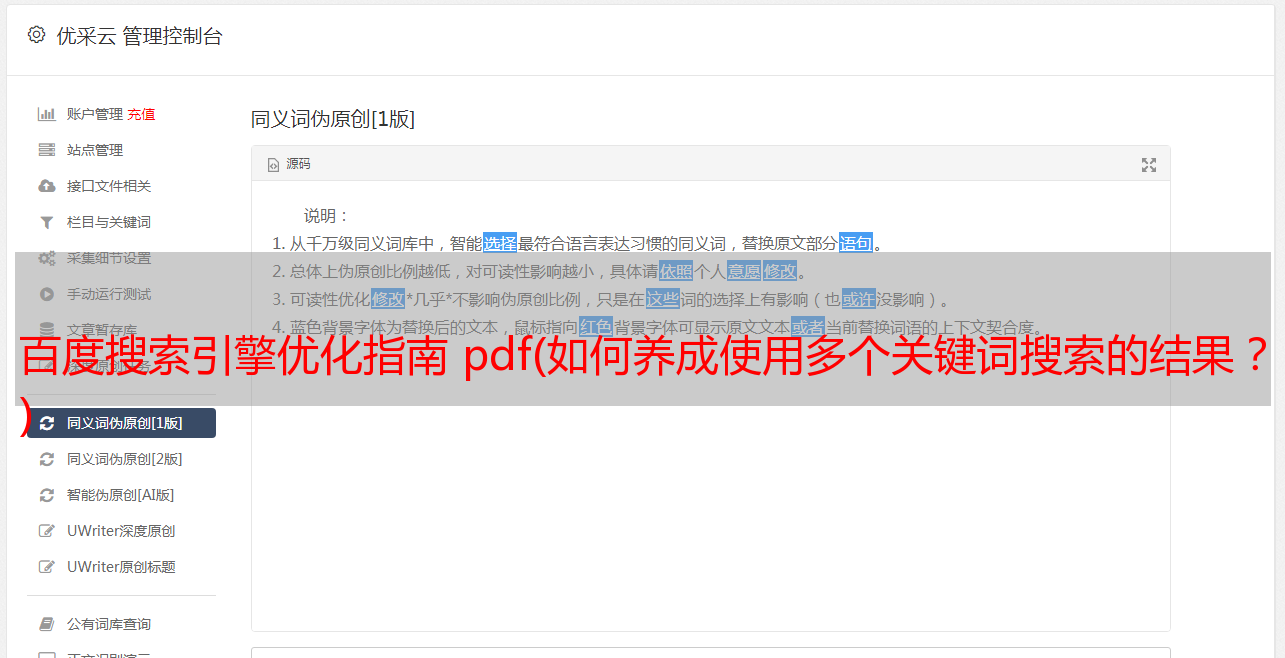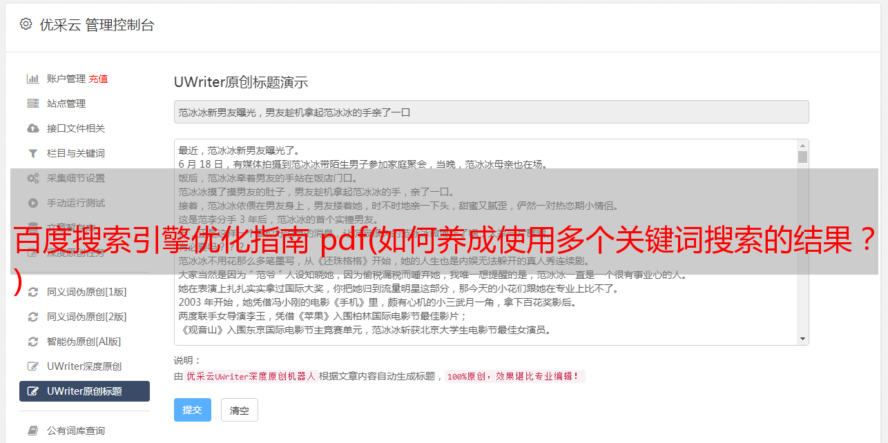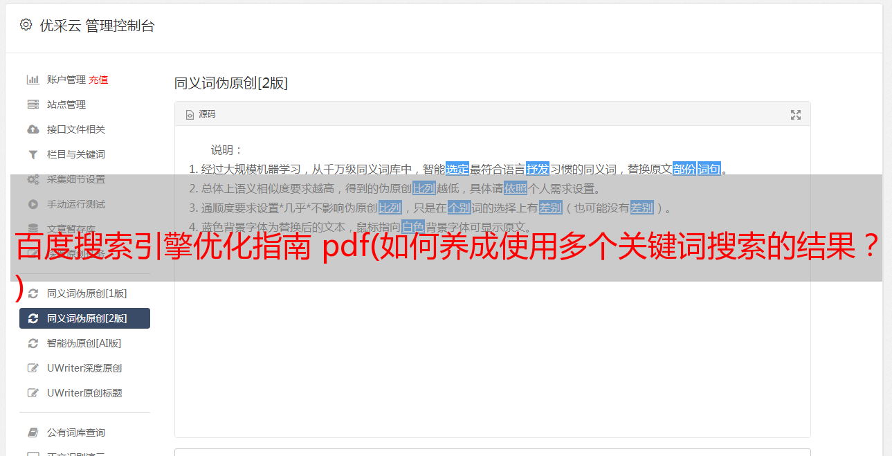 优采云 发布时间: 2022-04-09 00:13百度搜索引擎优化指南 pdf(如何养成使用多个关键词搜索的结果?