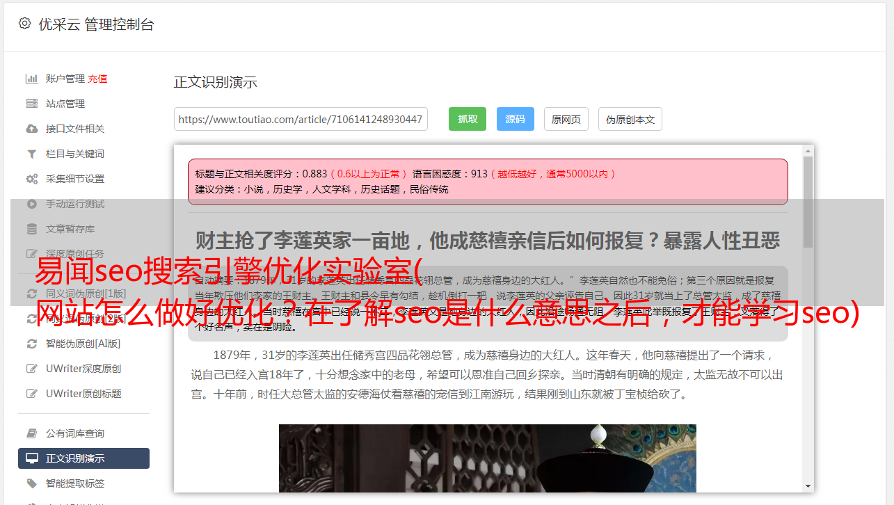 优采云 发布时间: 2022-04-09 05:24易闻seo搜索引擎优化实验室(