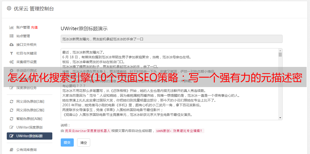优采云 发布时间: 2022-04-09 11:38怎么优化搜索引擎(10个页面SEO策略:写一个强有力的元描述密切关注)