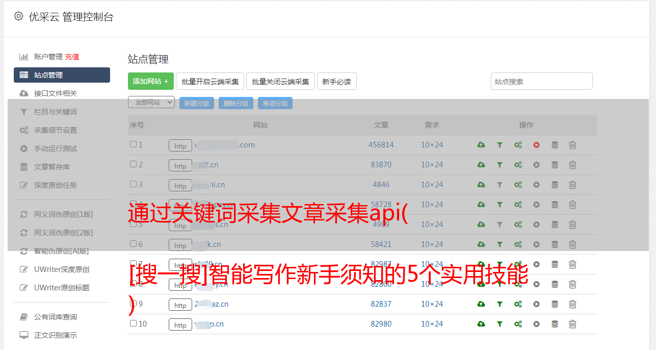 这里可以看到文章的出处和标题,也可以查看伪原创的内容和原文,方便修改。