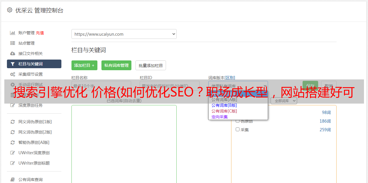 优采云 发布时间: 2022-04-10 02:26搜索引擎优化 价格(如何优化SEO?职场成长型,网站搭建好可不是每天发文章)