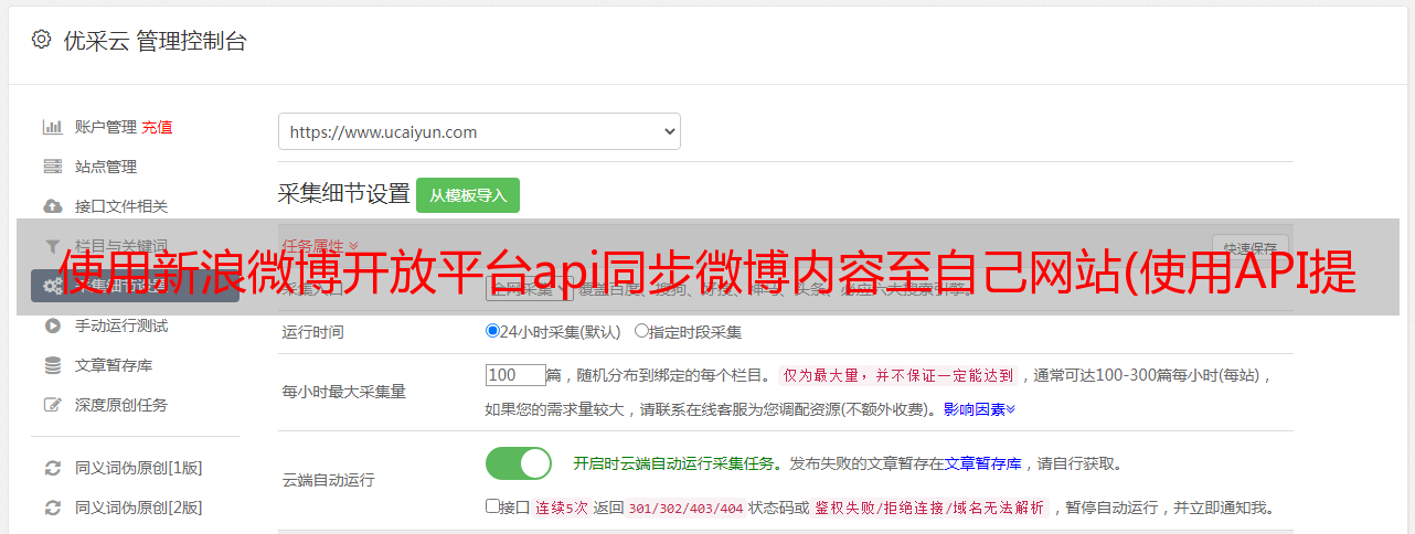 优采云 发布时间: 2022-04-10 03:16使用新浪微博开放平台api同步微博内容至自己网站(使用API提交数据(发布一条微博信息)(组图))