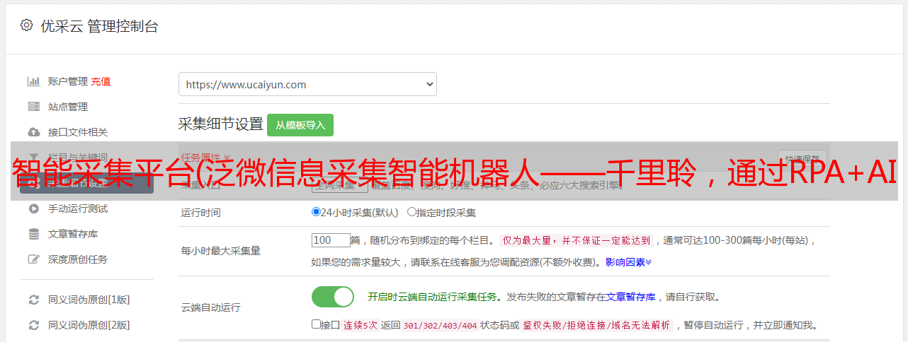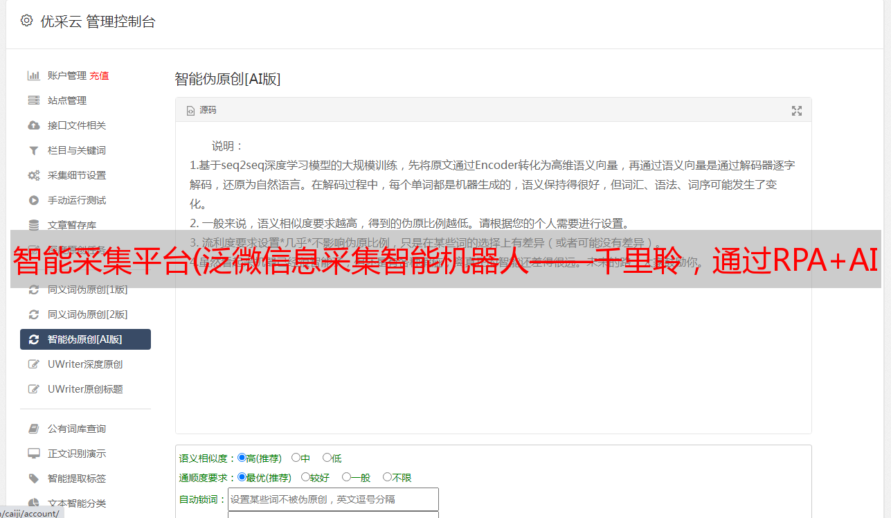 优采云 发布时间: 2022-04-10 09:03智能采集平台(泛微信息采集智能机器人——千里聆,通过RPA+AI两大系统引擎能力