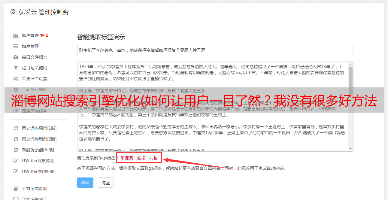 优采云 发布时间: 2022-04-10 11:32淄博网站搜索引擎优化(如何让用户一目了然?我没有很多好方法来做这件事)