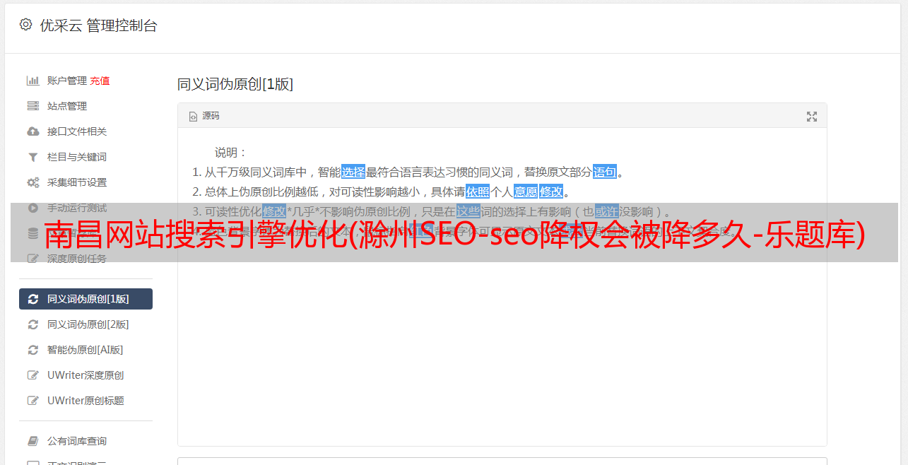 优采云 发布时间: 2022-04-11 00:16南昌网站搜索引擎优化(滁州SEO-seo降权会被降多久-乐题库)