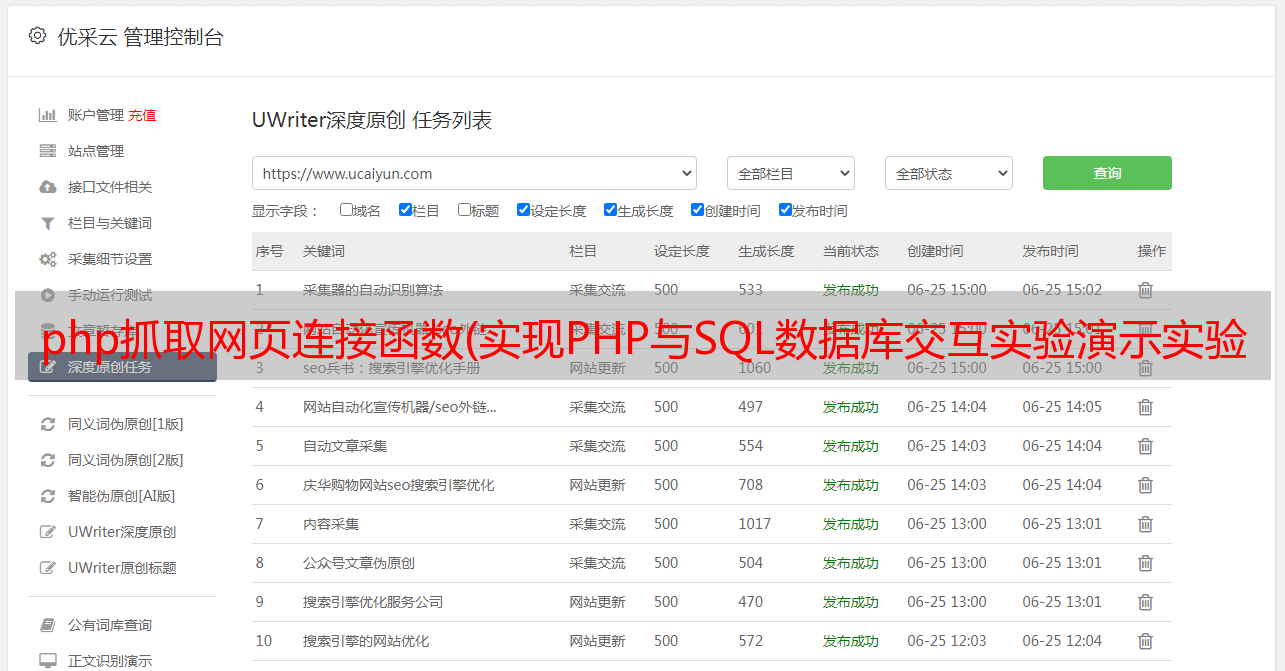 优采云 发布时间: 2022-04-11 03:31php抓取网页连接函数(实现PHP与SQL数据库交互实验演示实验环境(一))