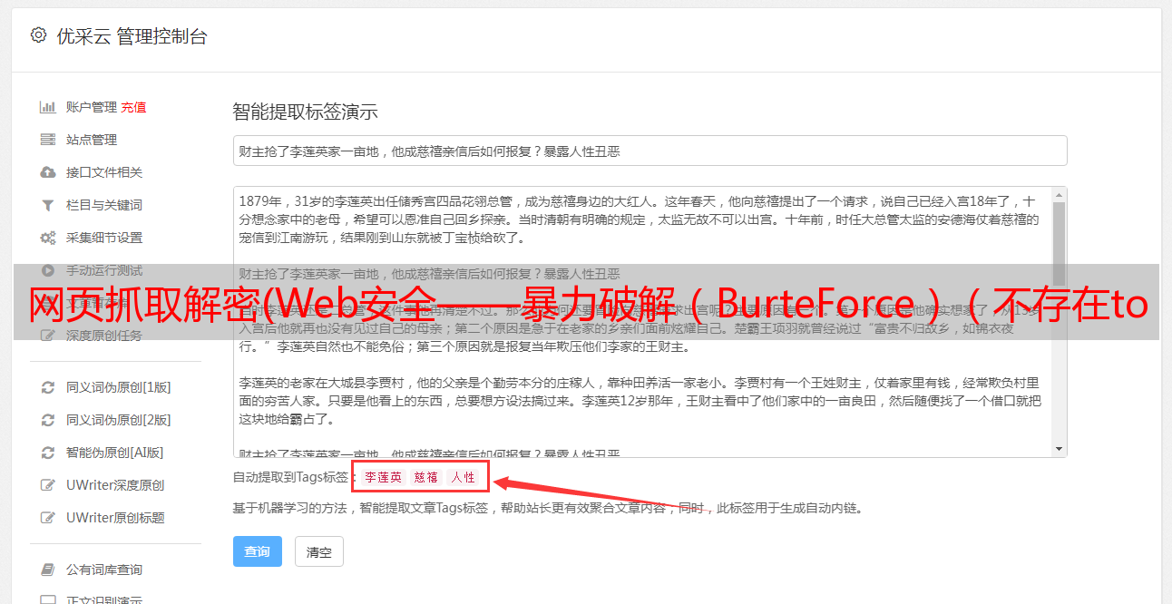 优采云 发布时间: 2022-04-11 19:03网页抓取解密(Web安全——暴力破解(BurteForce)(不存在token))