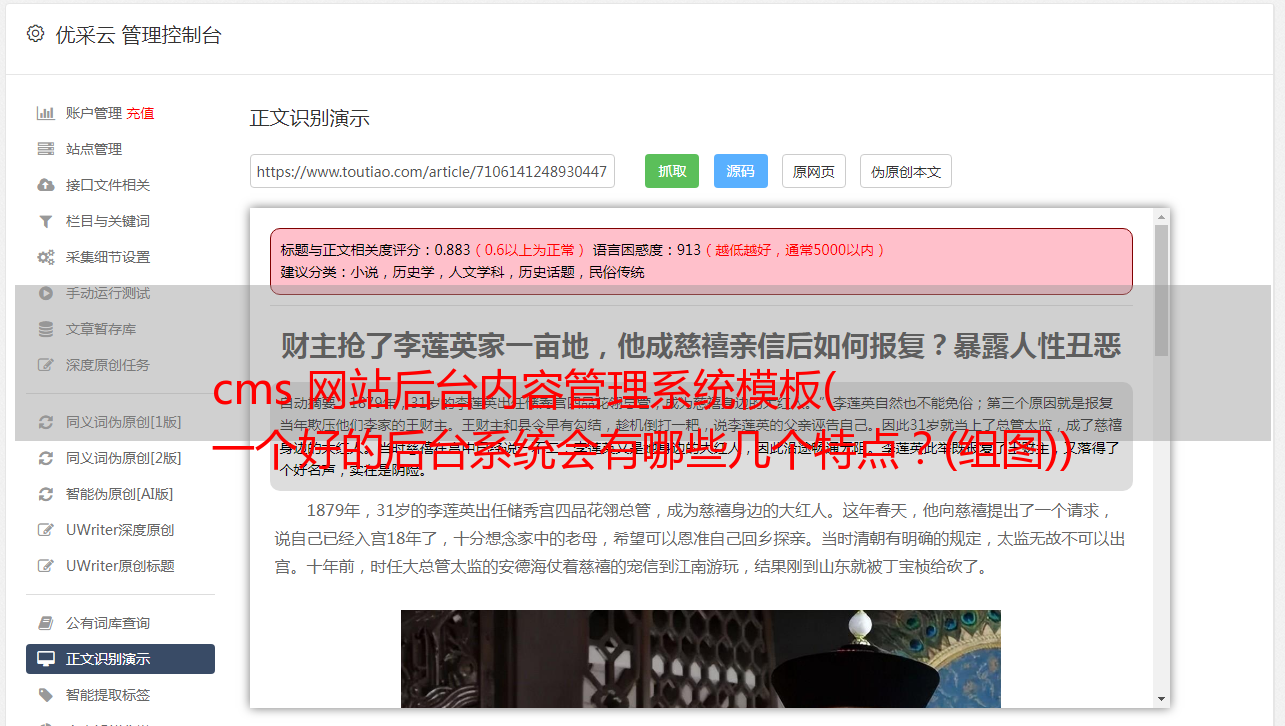 优采云 发布时间: 2022-04-11 22:01cms 网站后台内容管理系统模板(