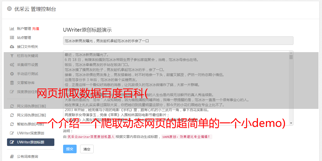 网页抓取数据百度百科( 一个介绍一个爬取动态网页的超简单的一个小demo)