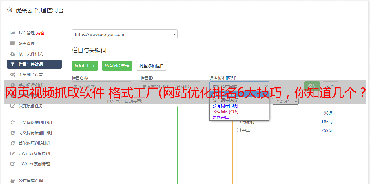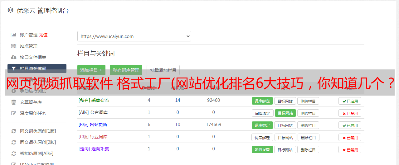 优采云 发布时间: 2022-04-12 04:38网页视频抓取软件 格式工厂(网站优化排名6大技巧,你知道几个??