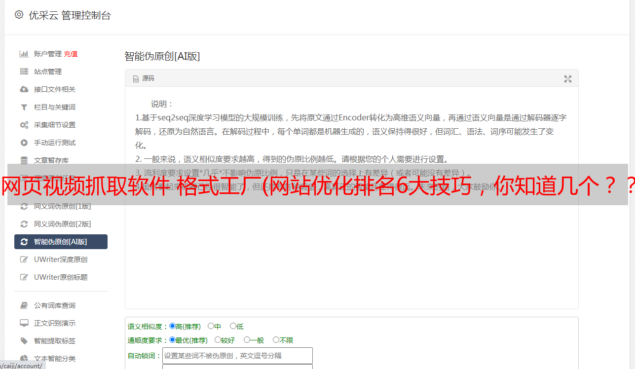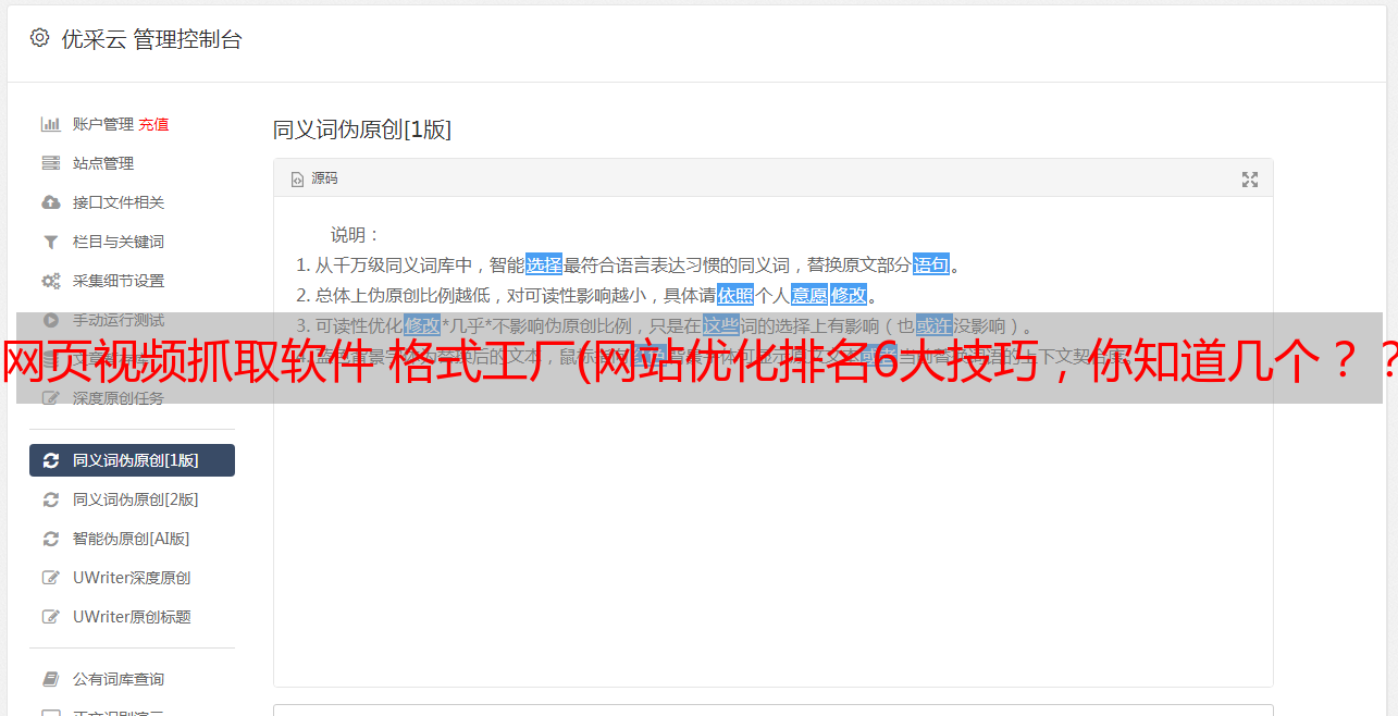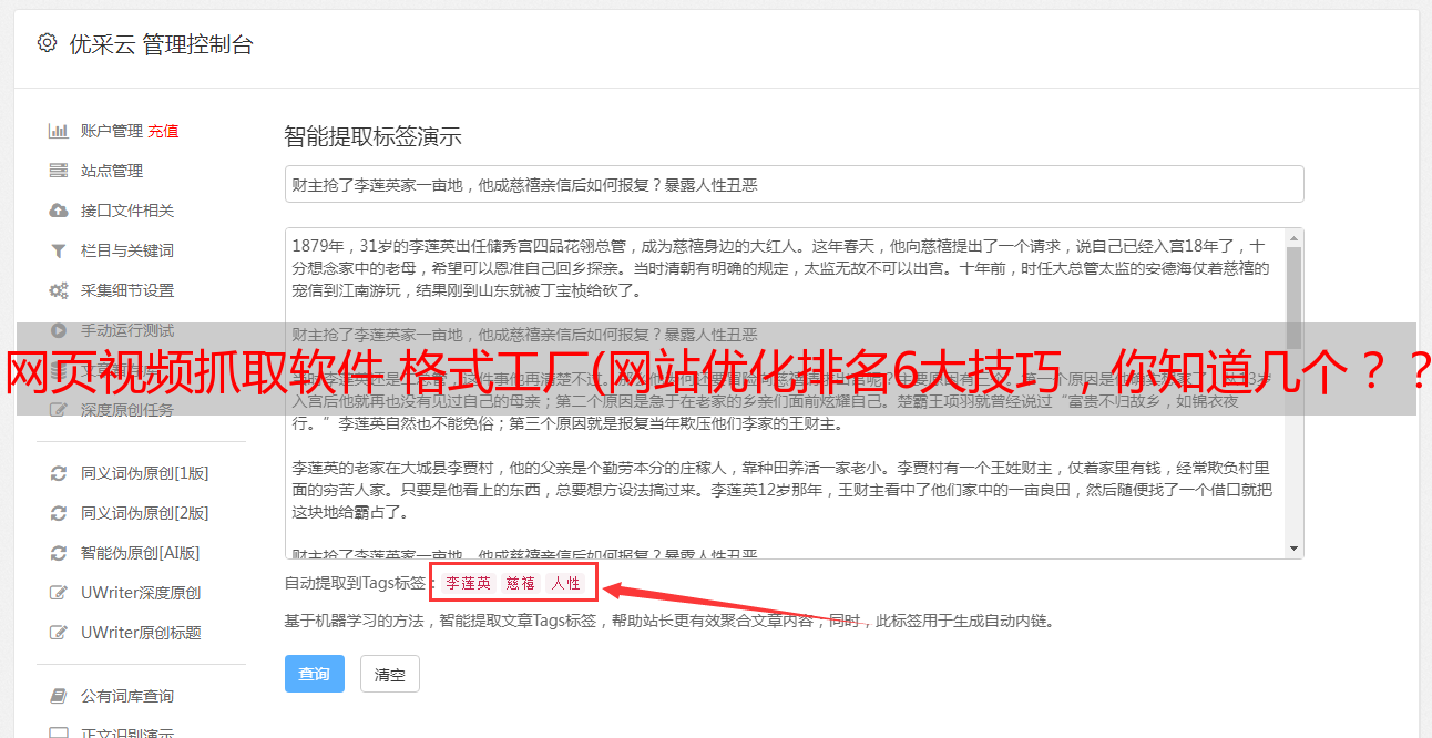 网页视频抓取软件 格式工厂(网站优化排名6大技巧,你知道几个?? )