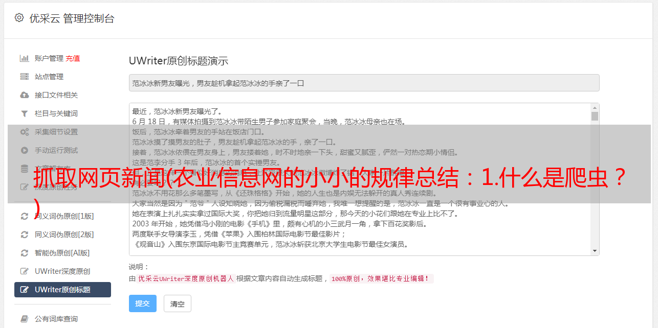 优采云 发布时间: 2022-04-12 07:18抓取网页新闻(农业信息网的小小的规律总结:1.什么是爬虫?