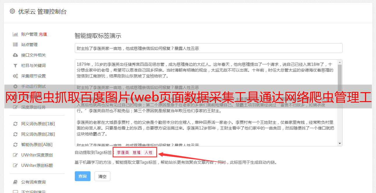 网页爬虫抓取百度图片(web页面数据采集工具通达网络爬虫管理工具应用场景 )
